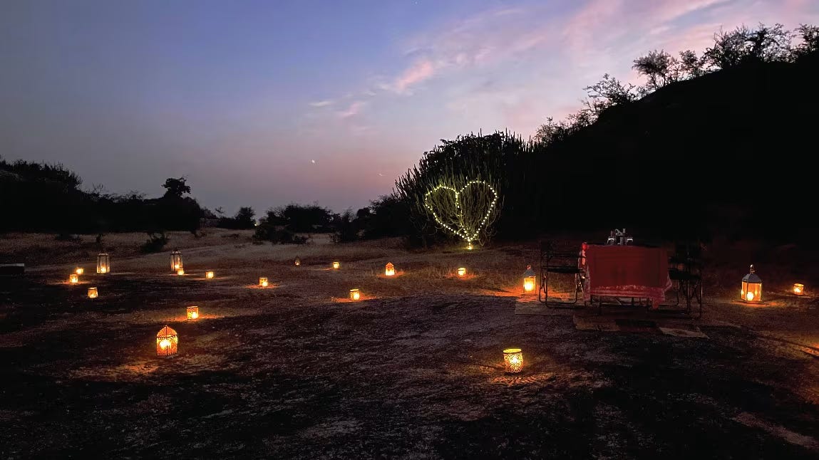 Escape the city bustle and indulge in a rare treat: dining under a star-filled sky at Brij Pola. Delight in a succulent barbecue feast illuminated by the gentle glow of the moon and flickering candlelight. The knowledgeable naturalist will guide you through the celestial wonders, pointing out subtle constellations like a lion in the sky or a planet closer than imagined.