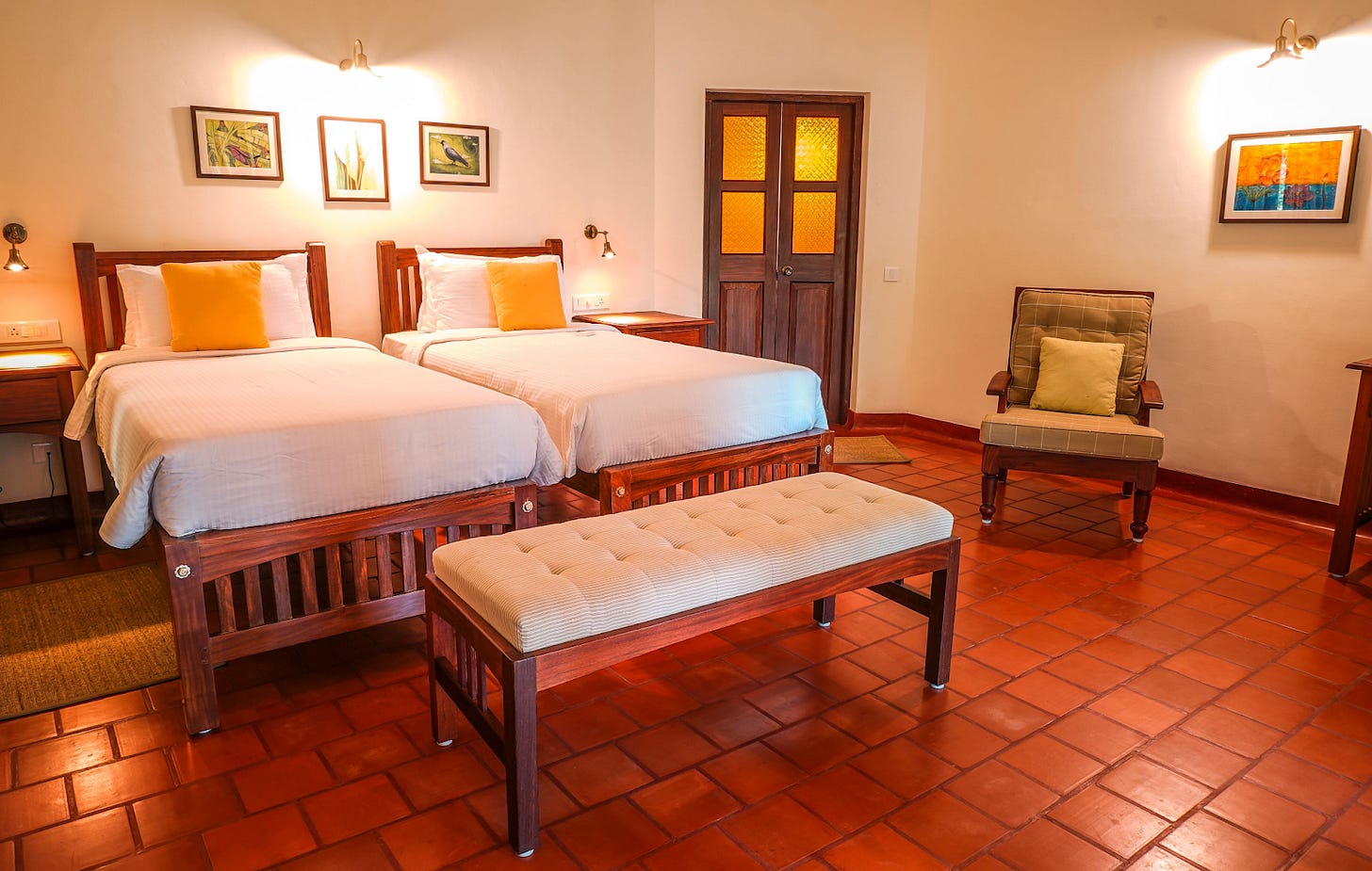 The accommodations at Windermere River House are designed to blend seamlessly with the natural environment while ensuring the utmost comfort and luxury. Drawing inspiration from the rich architectural heritage of Kerala, each room embodies the timeless charm of a planter's home. Think spacious and well-lit rooms, high ceilings, terra cotta tile flooring and artisanal furniture that pays homage to timeless traditions.